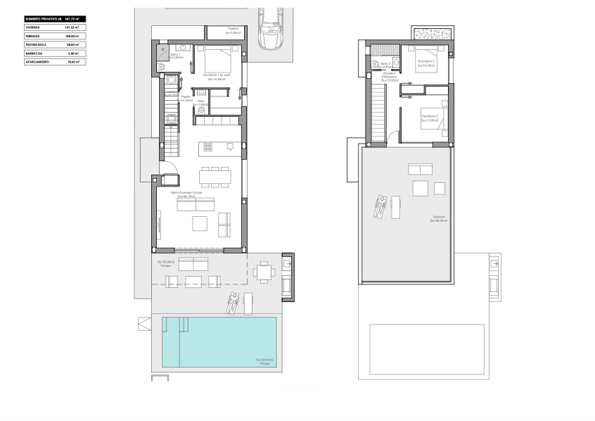 The homes come with either 2,5 or 3 bathrooms, a private swimming pool, private parking and storage room.