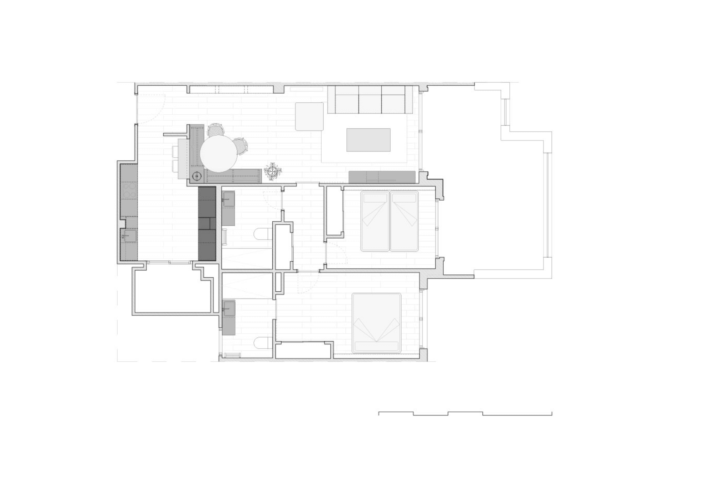 - 2 bathrooms with walk-in showers, including a master ensuite, finished in warm microcement