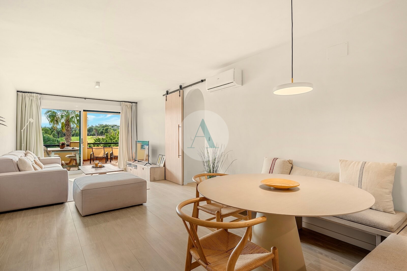 The interior has recently been completely renovated by the renowned architectural studio Manuel Garcia Asociados, featuring a refined Mediterranean aesthetic and high-quality finishes throughout.