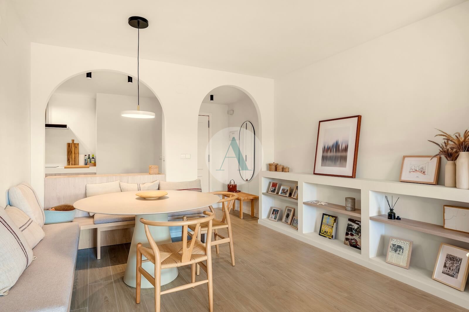 The renovation was guided by a clear architectural vision: creating a peaceful, neutral atmosphere where natural materials and handcrafted details take centre stage. Soft arches, lime-textured walls and carefully selected finishes result in an interior that feels both authentic and contemporary — a home where every detail has been thoughtfully considered.