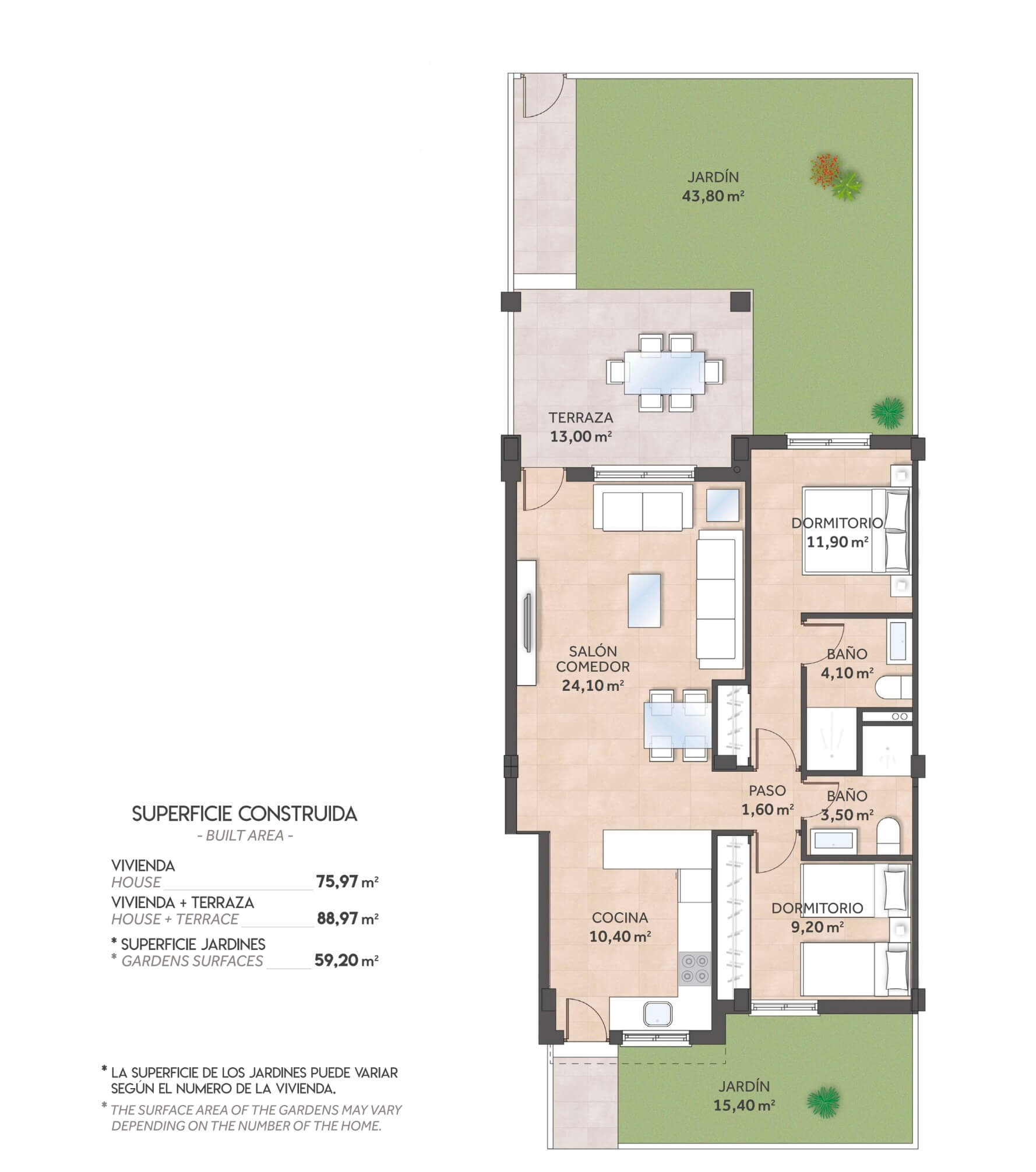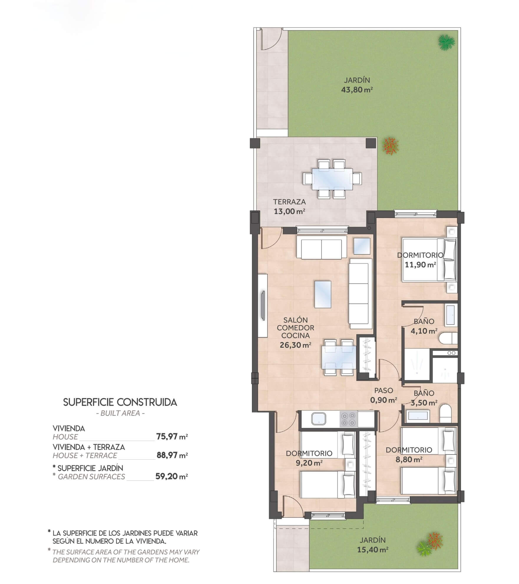 A third bedroom is available for an additional € 7.800, which also includes kitchen white goods. Please note that this customization is only available during the early stages of construction.